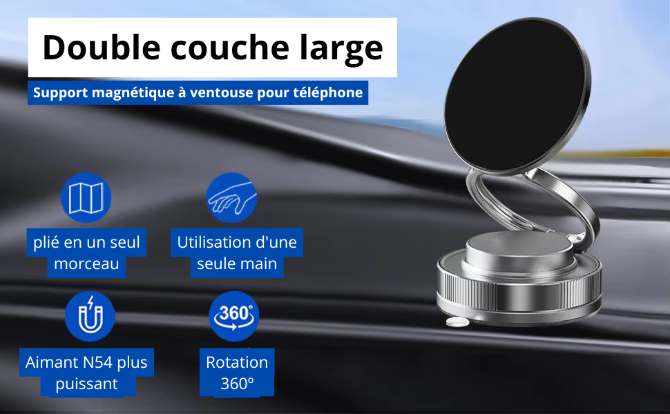 SUPPORT DE TÉLÉPHONE MAGNÉTIQUE À DOUBLE COUCHE: Le support de téléphone à ventouse utilise une technologie d’aspiration innovante pour maintenir fermement les surfaces lisses. Aimant large double couche N54 Mieux, plus cher et plus durable, c’est votre support de téléphone sous vide idéal pour la voiture.