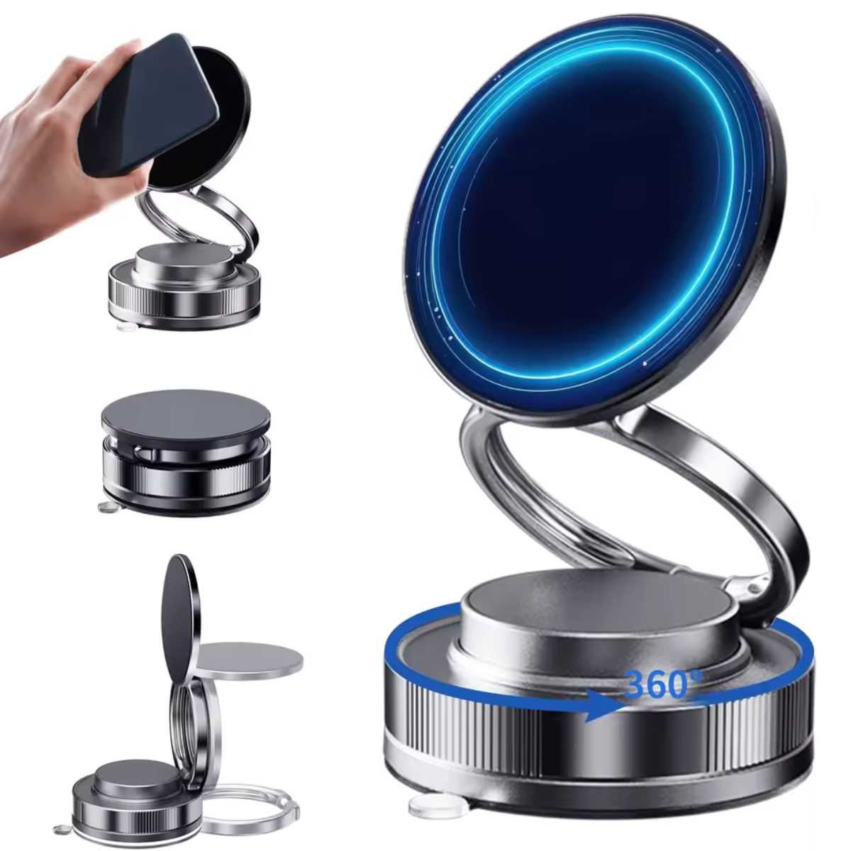 Support de téléphone magnétique sous vide compatible, support réglable multi-angle pliable à 360 ° pour voiture, salle de bain et tous les smartphones